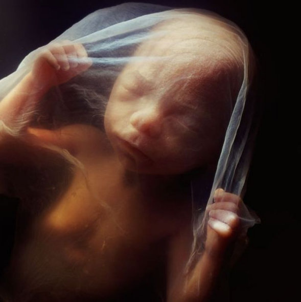 乔纳森·凯普出版社刊印的大本精装书《一个孩子的出生》收录了尼尔森拍摄的令人震撼的胎儿发育照。图片呈现的是10周大的胎儿。此时的眼睑半闭,几周内会完全闭合。