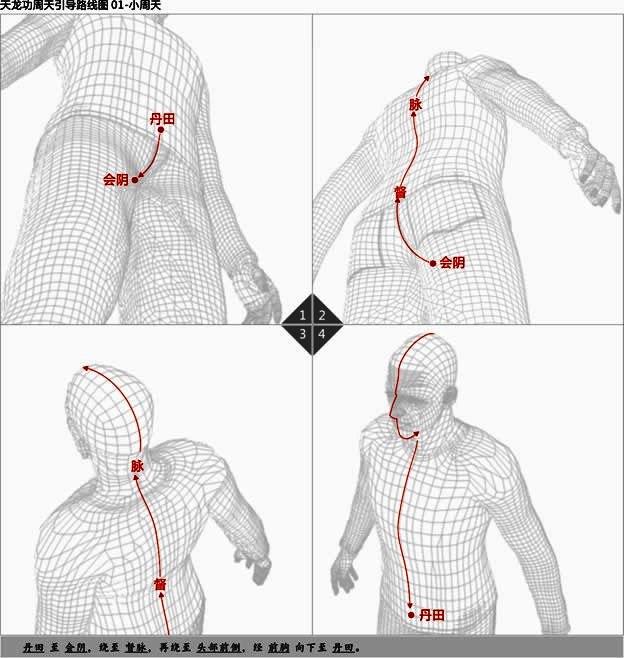 (以下所使用到的穴位名称,不要去研究这些穴位,因为在本功法中所使用到的这些穴位名称仅仅只是为了标注位置而使用,并不具有更深层面的含义,切记!别把事情搞得那么复杂高深。)